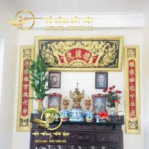 Cơ sở Đồ Đồng Đất Việt vừa hoàn thiện bàn giao và lắp đặt bộ Hoành Phi câu đối bằng đồng.