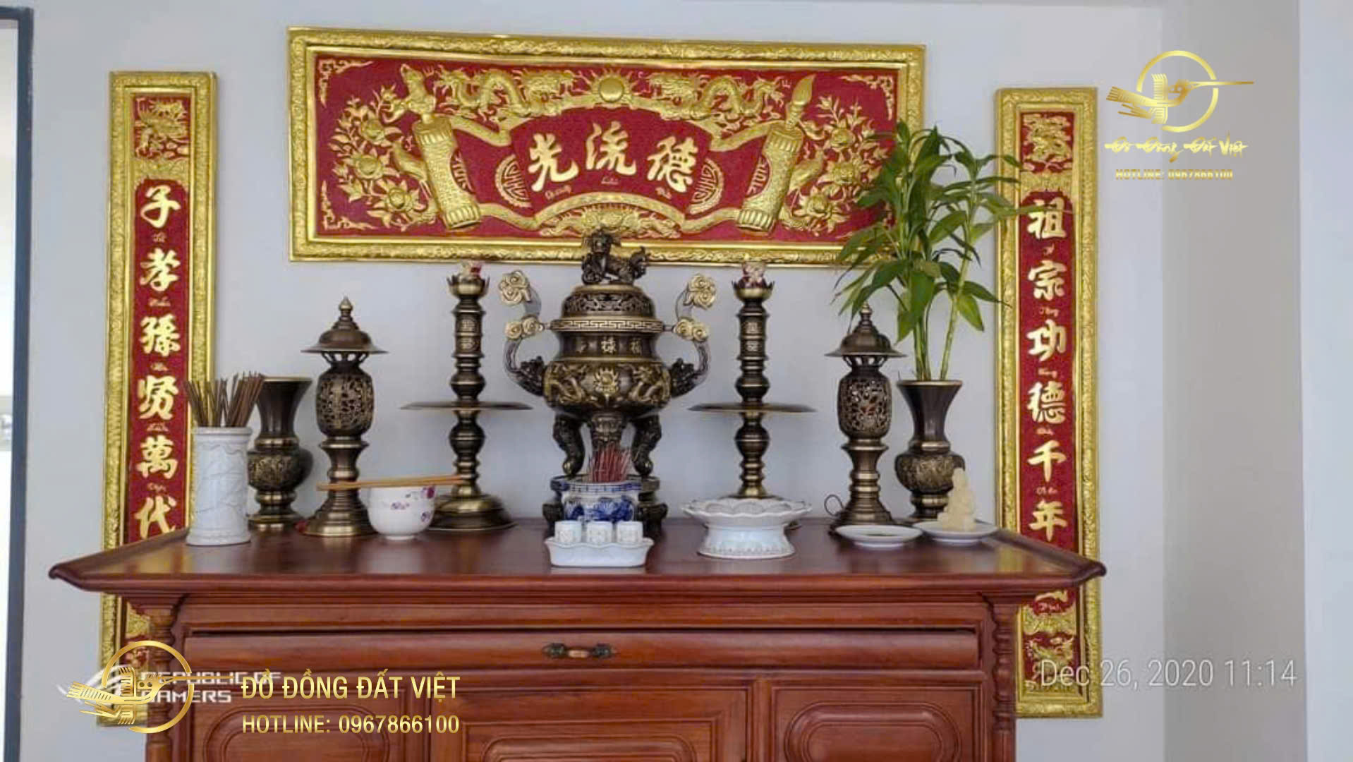Đối với quý khách hàng nào quan tâm, ĐỒ ĐỒNG ĐẤT VIỆT xin được gửi tới quý khách kích thước các bộ hoành phi/đại tự/cuốn thư câu đối phù hợp với các kích cỡ bàn thờ cụ thể