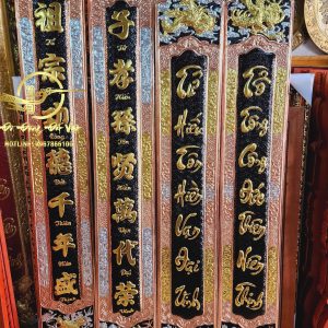 “Tổ tông công đức thiên niên thịnh – Tử hiếu tôn hiền vạn đại vinh.” là những lời răn dạy con cháu về đạo lý cha truyền – con nối, lấy đức làm gốc thì mọi sự sẽ thành. Tùy vào từng cơ sở chế tác mà cuốn thư câu đối có mẫu mã khác nhau nhưng với chất liệu bằng đồng trang trọng, hoa văn tinh xảo, độ bền cao vẫn thể hiện trọn vẹn ý nghĩa cuốn thư câu đối nhất.