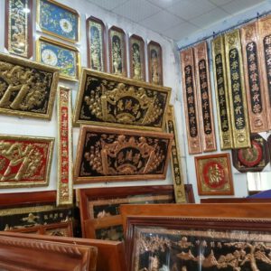 TRANH ĐƯỢC LÀM TRÊN CHẤT LIỆU ĐỒNG NGUYÊN TẤM, ĐƯỢC TRẠM KHẮC THỦ CÔNG BỞI NHỮNG NGƯỜI THỢ LÀNH NGHỀ CỦA LÀNG NGHỀ GÒ ĐÚC ĐỒNG ĐẠI BÁI