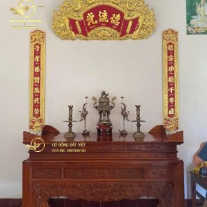 “Tổ tông công đức thiên niên thịnh – Tử hiếu tôn hiền vạn đại vinh.” là những lời răn dạy con cháu về đạo lý cha truyền – con nối, lấy đức làm gốc thì mọi sự sẽ thành. Tùy vào từng cơ sở chế tác mà cuốn thư câu đối có mẫu mã khác nhau nhưng với chất liệu bằng đồng trang trọng, hoa văn tinh xảo, độ bền cao vẫn thể hiện trọn vẹn ý nghĩa cuốn thư câu đối nhất