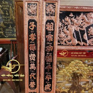 Bộ đại tự câu đối bằng đồng đỏ 1m76 là hàng đặt theo yêu cầu, được hoàn thiện bàn giao cho khách hàng tại Sóc Sơn – Hà Nội. Sản phẩm thuộc dòngđồ thờ bằng đồng chất lượng, sử dụng phù hợp cho mọi không gian thờ cúng tổ tiên.