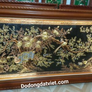 tranh đồng vinh hoa phú quý, đồng đỏ dát vàng , khung gỗ