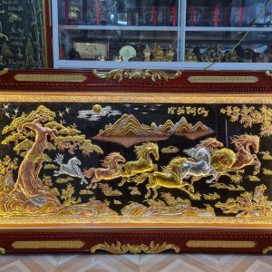 Tranh mã đáo thành công – Đây là dòng tranh có nhiều biến thể nhưng cơ bản vẫn là hình ảnh 8 con ngựa khỏe mạnh, dũng mãnh phi nước đại về phía trước. Trong đó, ngựa là loài vật nuôi khá gần gũi với cuộc sống con người bởi sự trung thành, bền bỉ và rất khỏe mạnh.